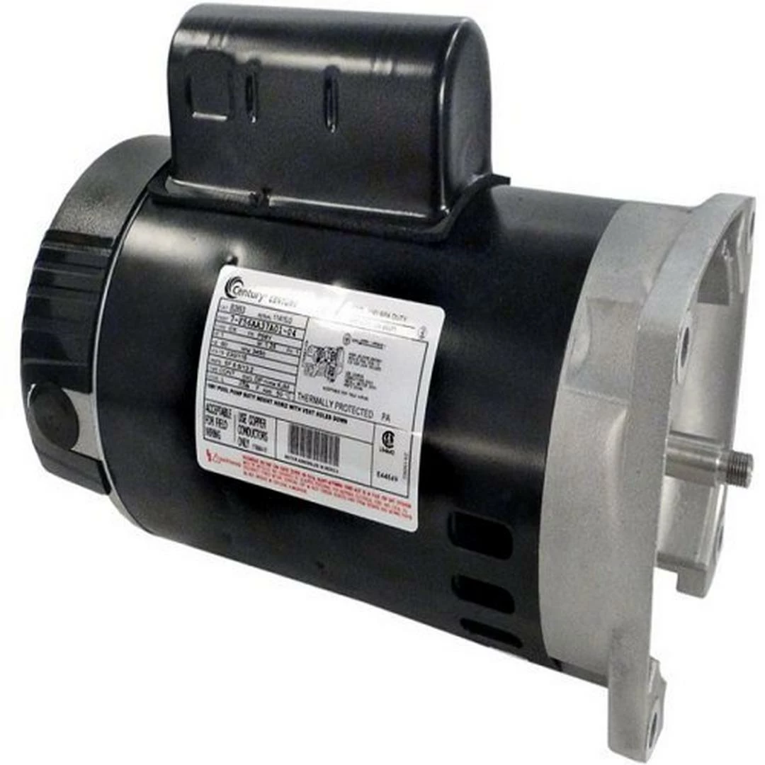 The Century Pool and Spa Pump Motor B2853 is a single phase motor with a permanent split capacitor for enhanced running efficiency. Equipped with an auto overload protector and ball bearings, the Century Pool and Spa Pump Motor provides long lasting operation. The Century A.O. Smith Pump Motor has a threaded shaft that allows for convenient and direct mounting.