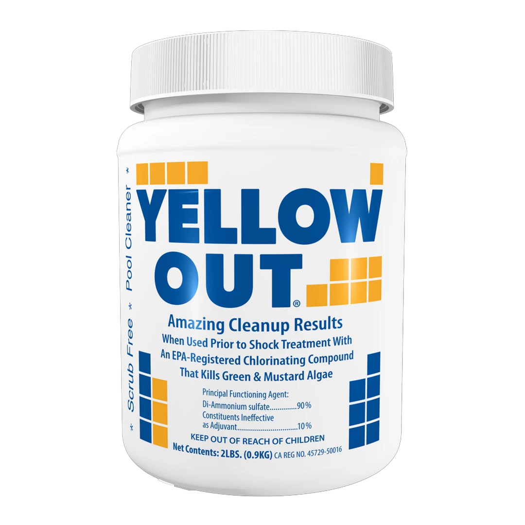 Use 2 lbs of Yellow Out per 15,000 gallons of water prior to shock treatment with an EPA-registered chlorine that kills yellow algae.