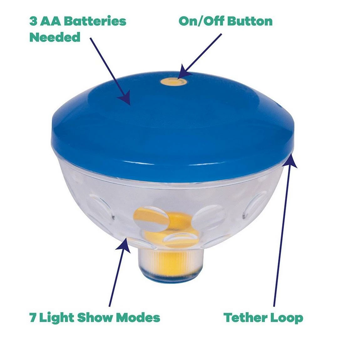 Light up your hot tub for the perfect evening ambiance to relax in with this floating underwater light show. The light floats on the surface of the water, projecting colors and seven different light shows onto your spas underwater surfaces. You can also use it in your pool if you have one.