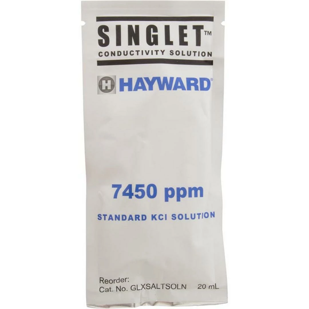 Calibration solution for the handheld Hayward Digital Salt Meter (GLX-SALTMETER). Pack of two 7450 ppm concentration for calibrating the salinity reading of your digital test meter.
