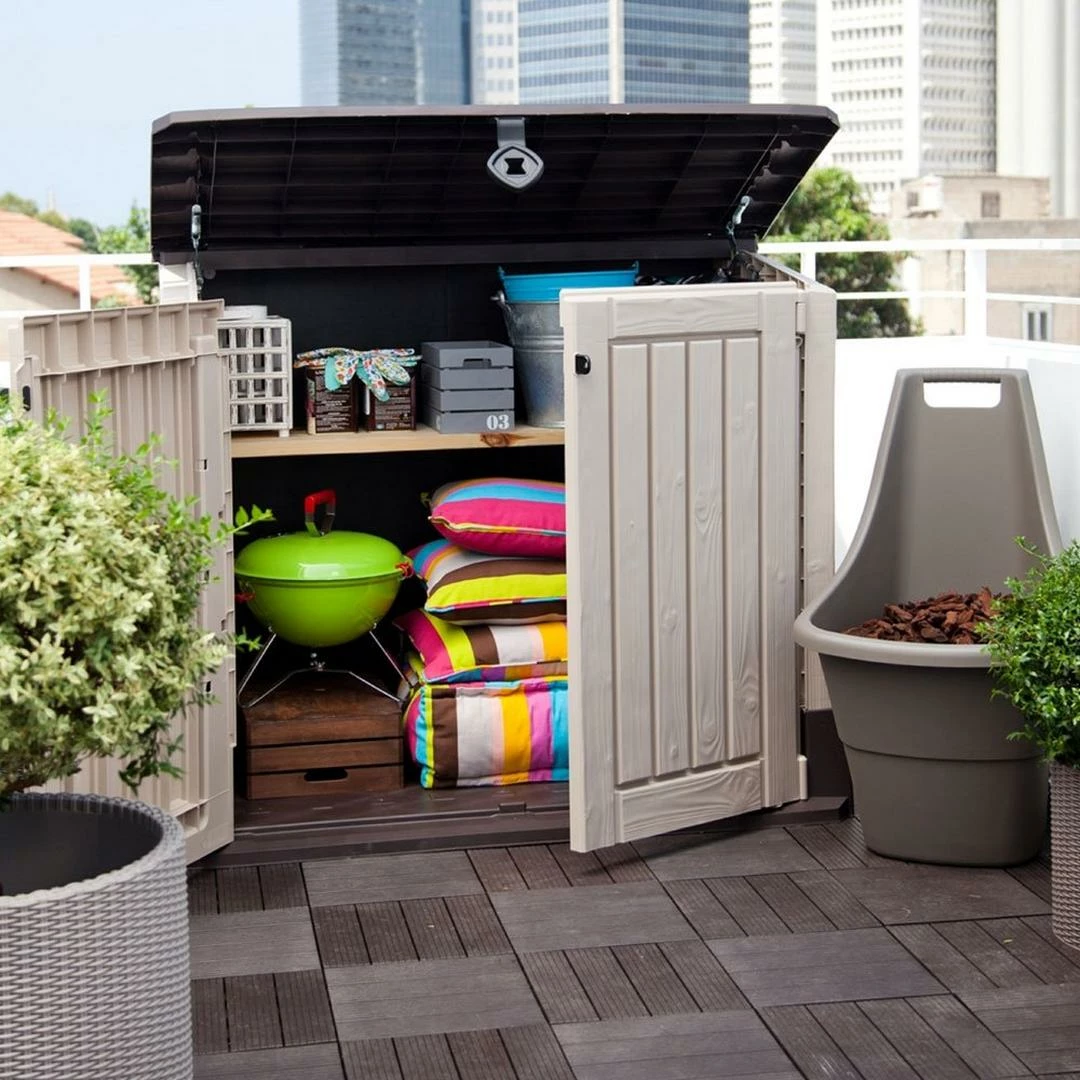 Ideal for interior and outdoor spaces, the best-selling Store-It-Out MIDI provides well-ventilated storage for up to 845 L/30 cu. ft. of items. Easy to take home and easy to position, it blends in with your home and is a breeze to assemble. Floor panel, top and front opening, and durable, weather-resistant construction comes as standard.