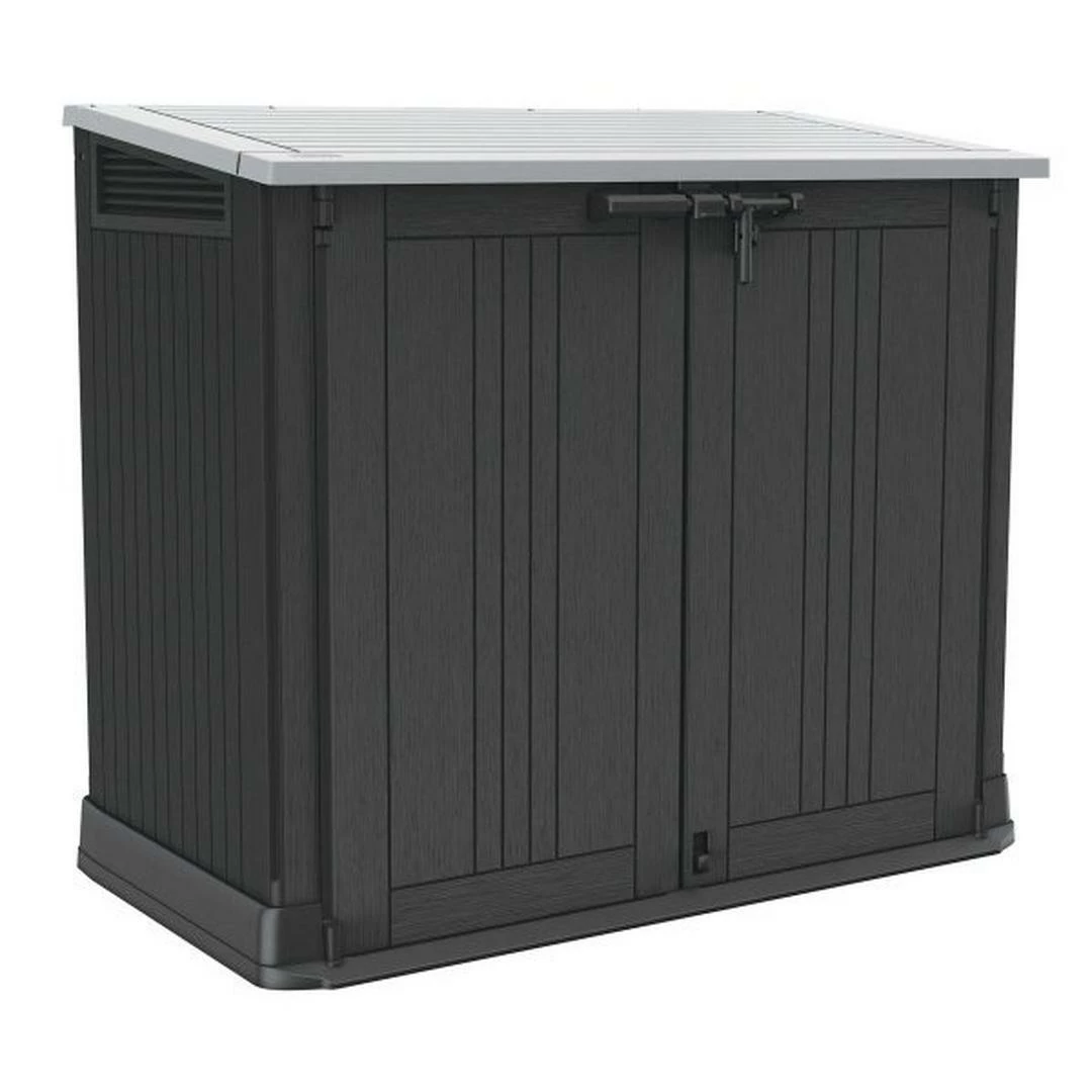 Store-It-Out PRIME storage unit has just about everything you might want in a shed. It starts with its generous size – a full 880 L/31 cu. ft. of space. Then ventilation panels for airflow, a sturdy built-in floor panel to keep your items clean and dry, and even a built-in support for a shelf (shelf not included) to help you make the most of the interior space. Included hydraulic pistons to hold the top open and a special bin-opening kit that lets you open your trash bins just by lifting the lid.