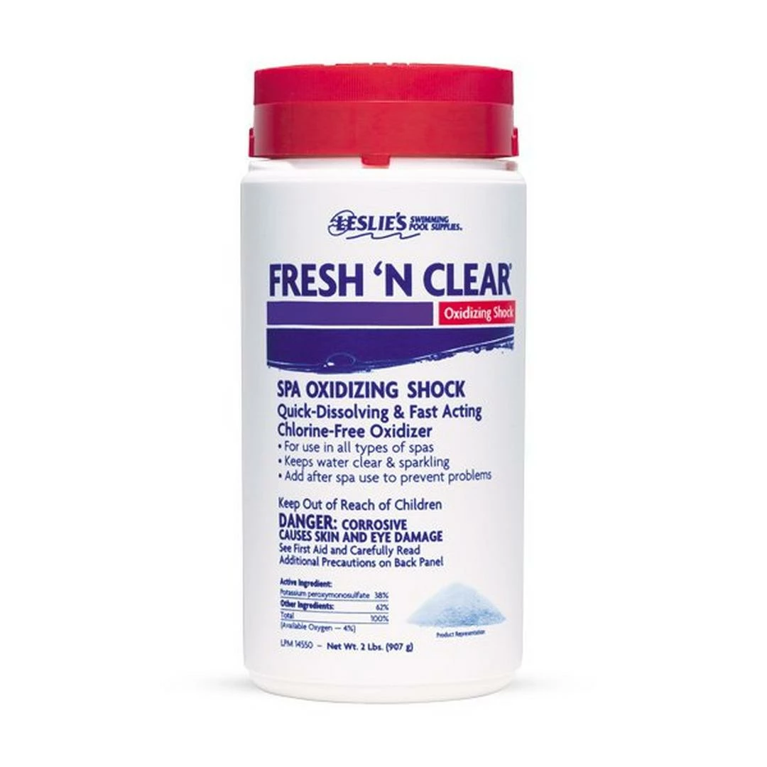 Fresh ‘N Clear for your spa is a non-chlorine pool chemical, that shocks your spa and gets rid of contaminants, organic waste, chlorine odor, and prevents algae while making your chlorine work harder. It rapidly dissolves in your spa eliminating active chlorine levels getting rid of strong chlorine odors while freeing up the remaining chlorine to get rid of bacteria in your spa. Fresh ‘N Clear will stable pH levels in your spa while getting rid of any cloudy water giving you a clean, clear and comfortable feel to your spa.