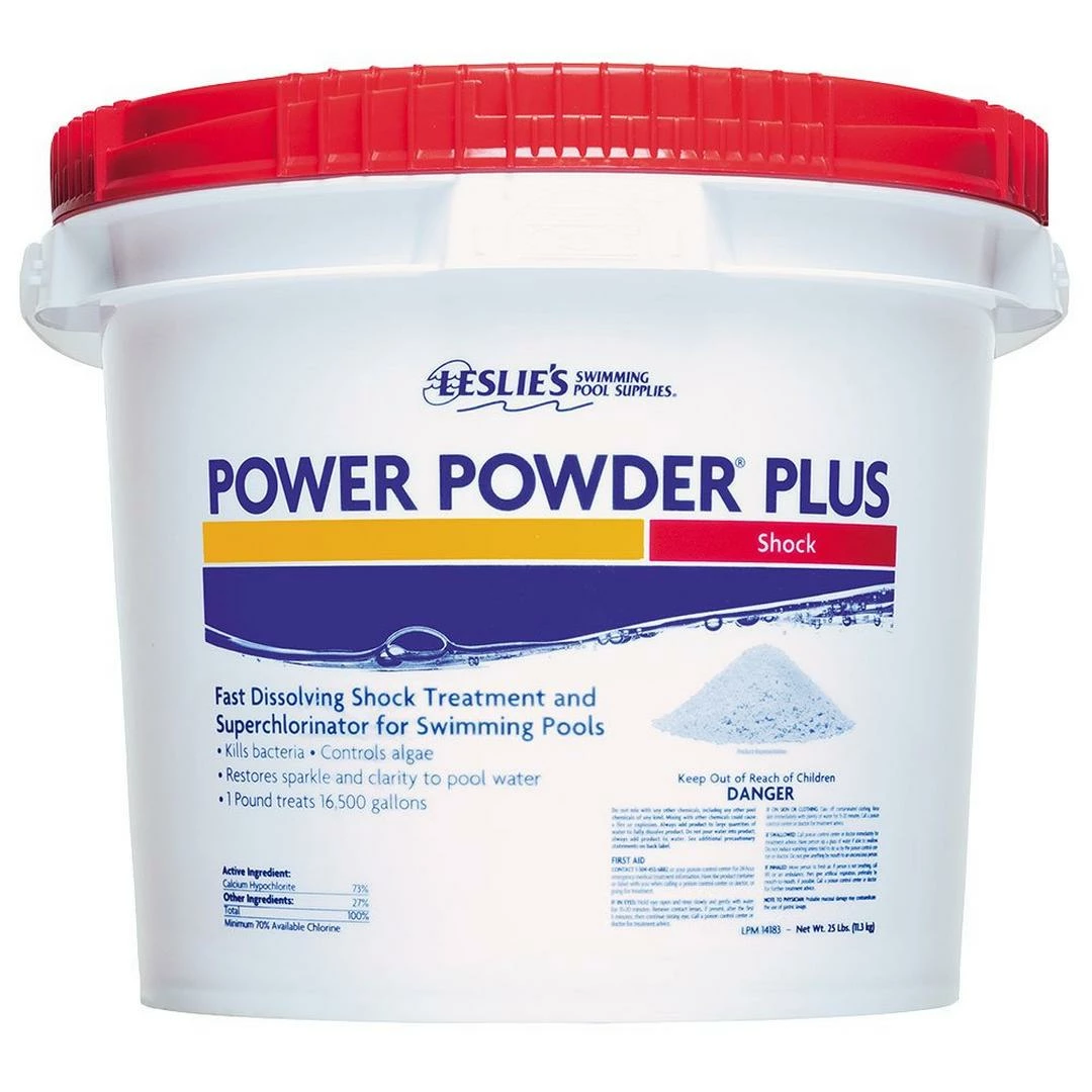 To get rid of the toughest of algae and solve other pool problems fast, look no further than Leslie’s Power Powder Plus. The highest percentage of Calcium Hypochlorite active ingredient to destroy organic contaminants, kill bacteria and control algae. At Leslie’s, We Know Pools, and we are your best source for the strongest Calcium Hypochlorite pool shock.