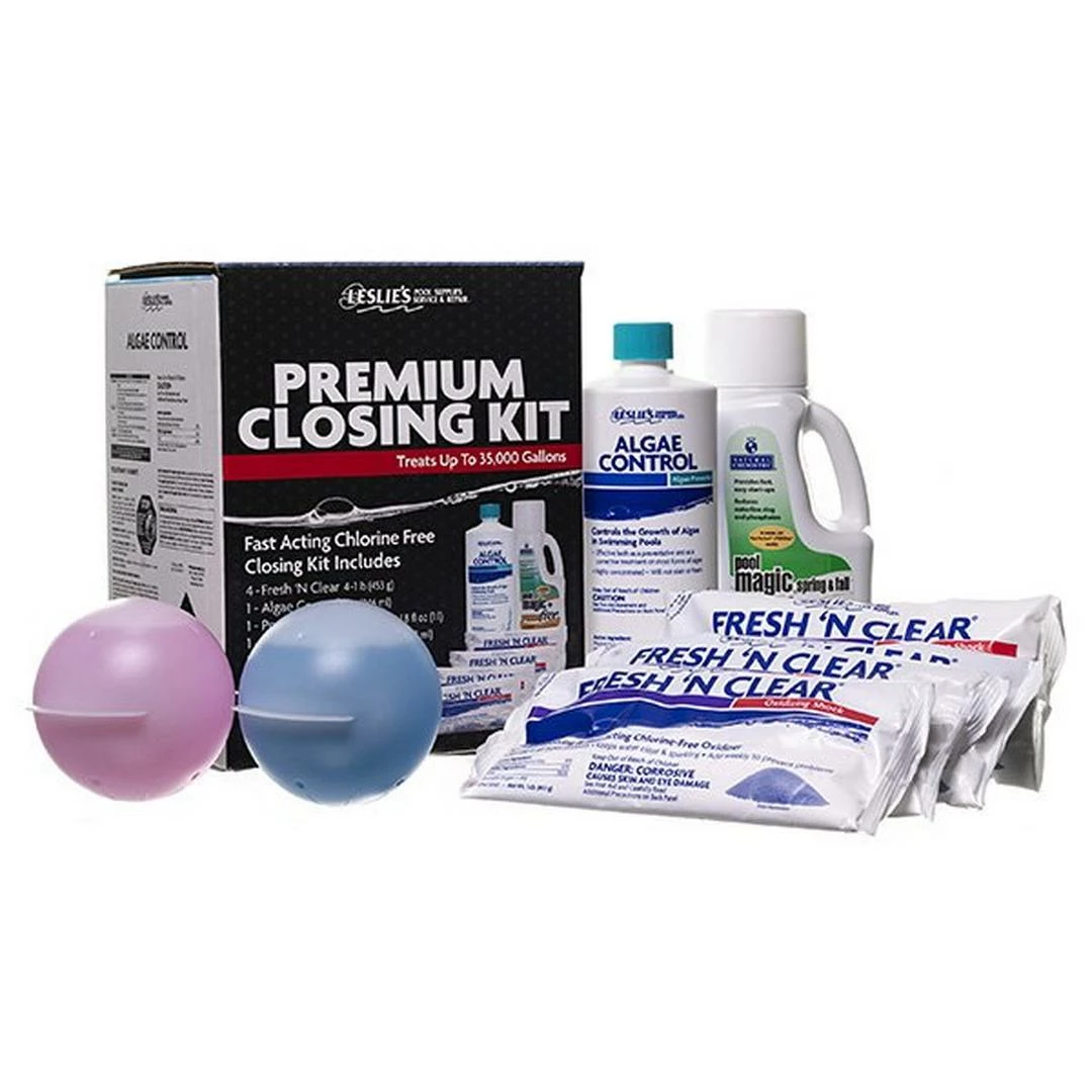 Leslie’s Premium Pool Closing Kit Instructions: Please click for instructions on how to use the chemicals in the Premium Pool Closing Kit for up to 35,000 Gallons.