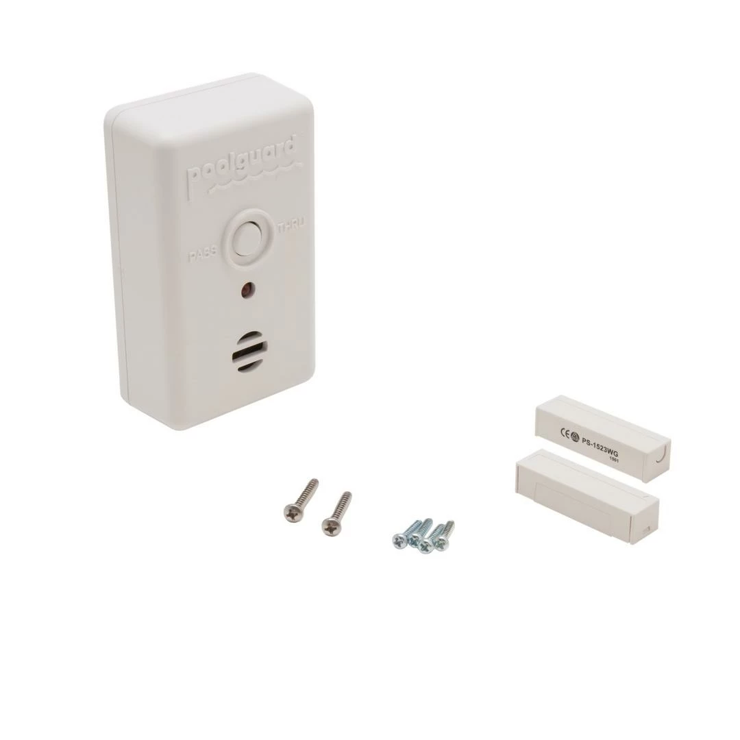 Poolguard has been manufacturing pool alarms, door alarms, and gate alarms since 1982. All Poolguard products are proudly made in the USA. Poolguard Door Alarms comply with all building codes and are UL Listed under UL 2017. The majority of children that drown in pools go out the back door first and Poolguard’s Door Alarm can help protect those doors. The Door Alarm will sound in 7 seconds when a child opens the door, and the alarm will continue to sound until an adult comes to the door and resets the alarm. The Door Alarm is always on and will automatically reset under all conditions. Poolguard Door Alarm is equipped with an adult pass through feature that will allow adults to go through the door without the alarm sounding.